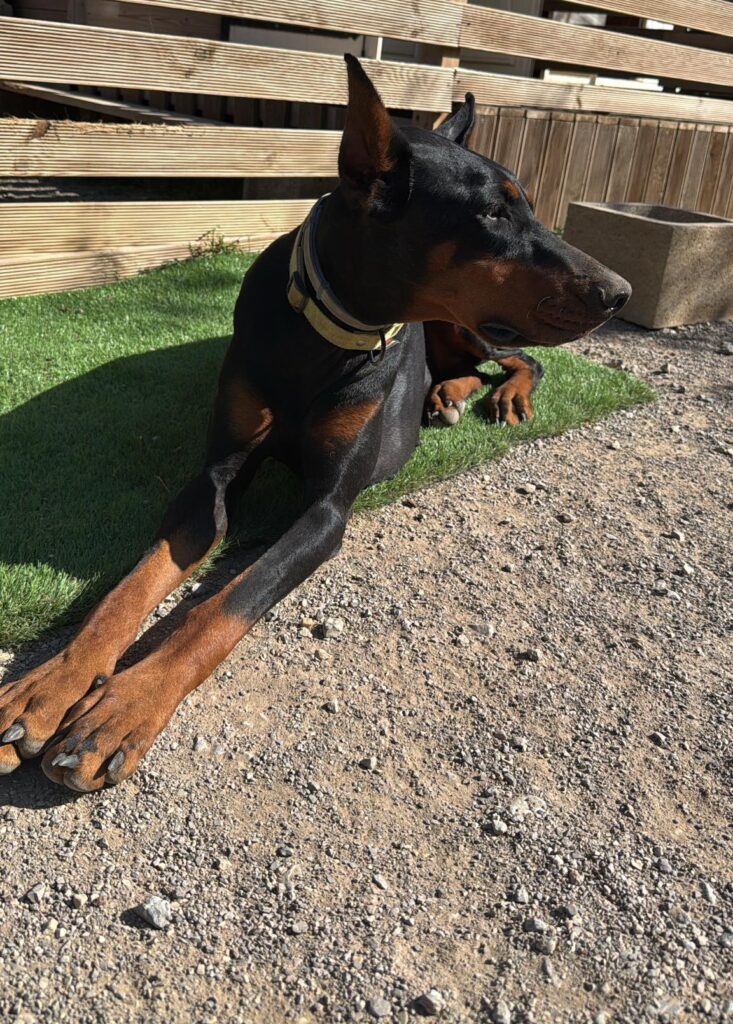 L’après-midi débute généralement par un moment plus calme, afin de laisser aux chiens le temps de bien digérer. Ils profitent alors librement du jardin, à leur rythme, pour se reposer, observer ou jouer tranquillement entre eux.