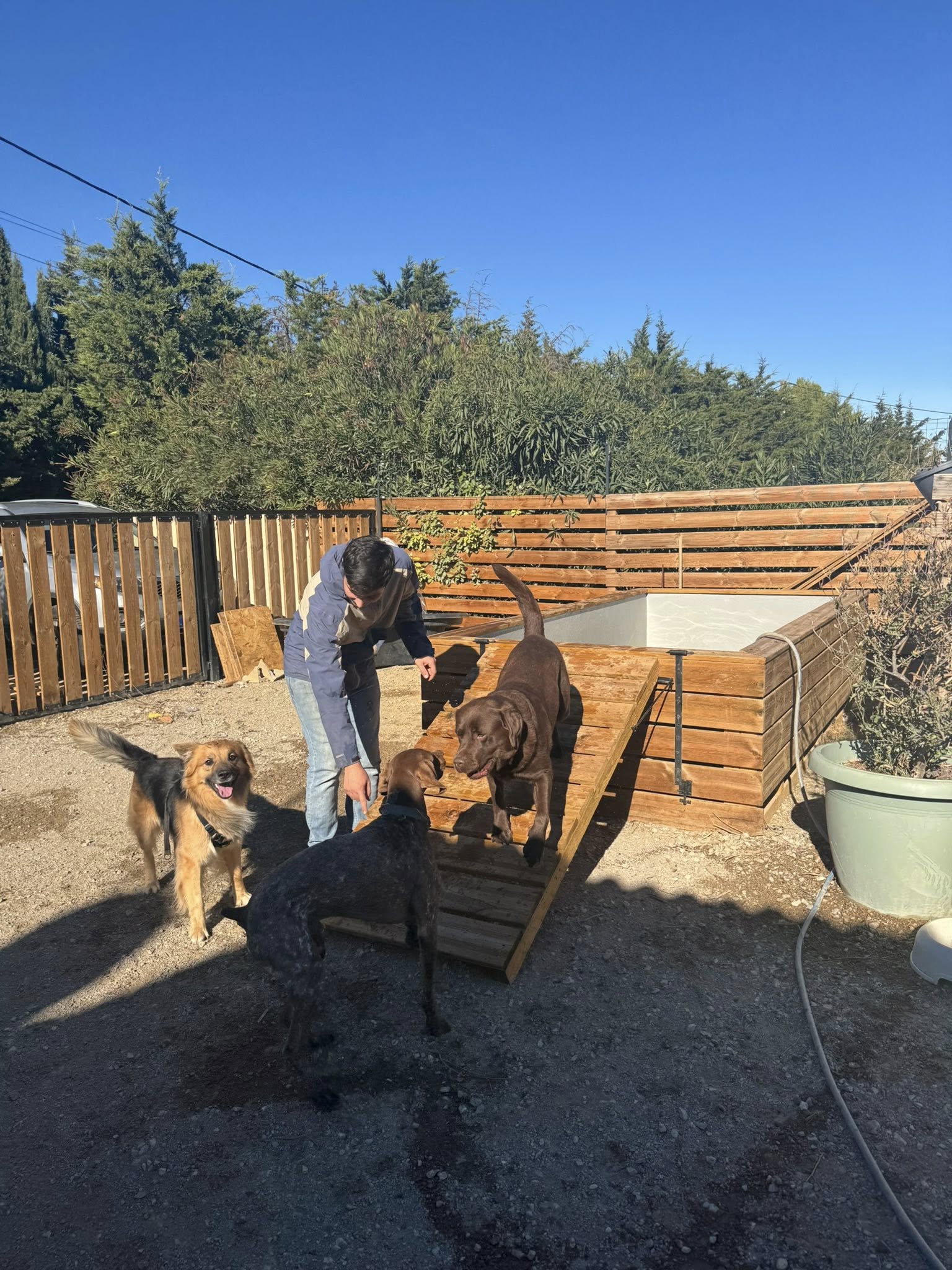 Une piscine est à disposition pour les chiens qui aiment l’eau.